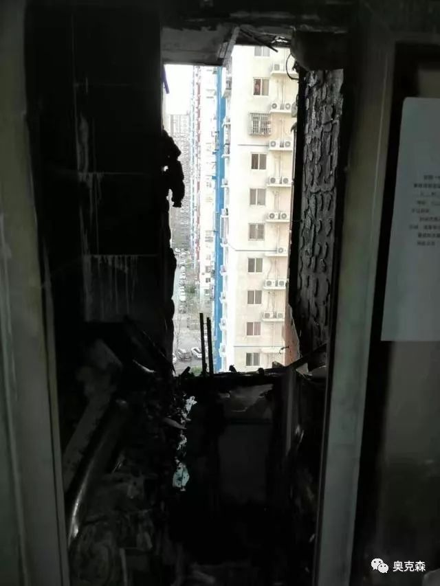 今天早晨,從2號樓出門的不少居民發(fā)現(xiàn),樓道地面上滿是積水和碎玻璃碴兒。由于樓內(nèi)三部電梯都已停運(yùn),大家上下樓只能順著樓梯深一腳淺一腳地往下走。“你看看,我家全沒了。”住在12層的居民帶著記者來到了她被燒得漆黑一團(tuán)的家。“幸虧我睡覺晚,當(dāng)時(shí)我愛人說屋里是什么味兒啊,一開廚房,火已經(jīng)從窗戶里躥進(jìn)來了。”