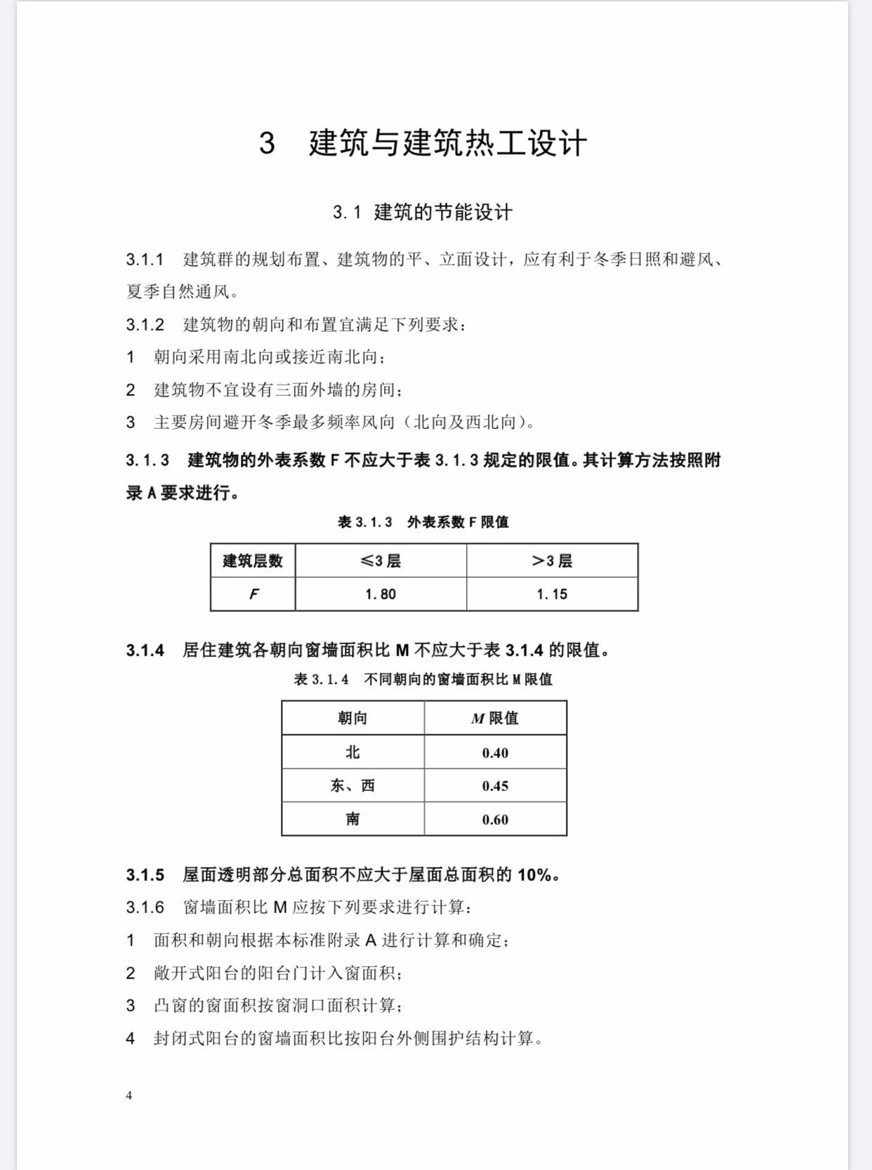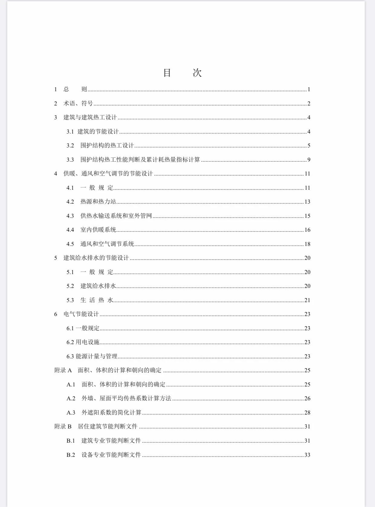 本標(biāo)準(zhǔn)修訂的主要技術(shù)內(nèi)容包括:1、提高了建筑節(jié)能目標(biāo);2、提高了建筑圍護(hù)結(jié)構(gòu)熱工性能,大幅提高了外窗的傳熱系數(shù)標(biāo)準(zhǔn);3、提出了規(guī)定性指標(biāo)與性能化指標(biāo)雙控的要求;4、給出了建筑物供暖能耗指標(biāo)和集中空調(diào)系統(tǒng)能效水平指標(biāo)的性能化計(jì)算方法,并分別給出了限值的現(xiàn)行值與引導(dǎo)值,統(tǒng)一了能耗計(jì)算軟件內(nèi)核;5、增加了外表系數(shù)的術(shù)語(yǔ)與限值;6、加強(qiáng)了對(duì)供暖、通風(fēng)和空調(diào)系統(tǒng)的節(jié)能設(shè)計(jì)要求;7、修改了太陽(yáng)能生活熱水設(shè)置的判定條件,增加了生活熱水熱源選擇的條文;8、增加了光伏發(fā)電的規(guī)定。本標(biāo)準(zhǔn)還附有若干節(jié)能設(shè)計(jì)判斷文件、建筑熱工和管道保溫計(jì)算、外窗熱工性能等資料。