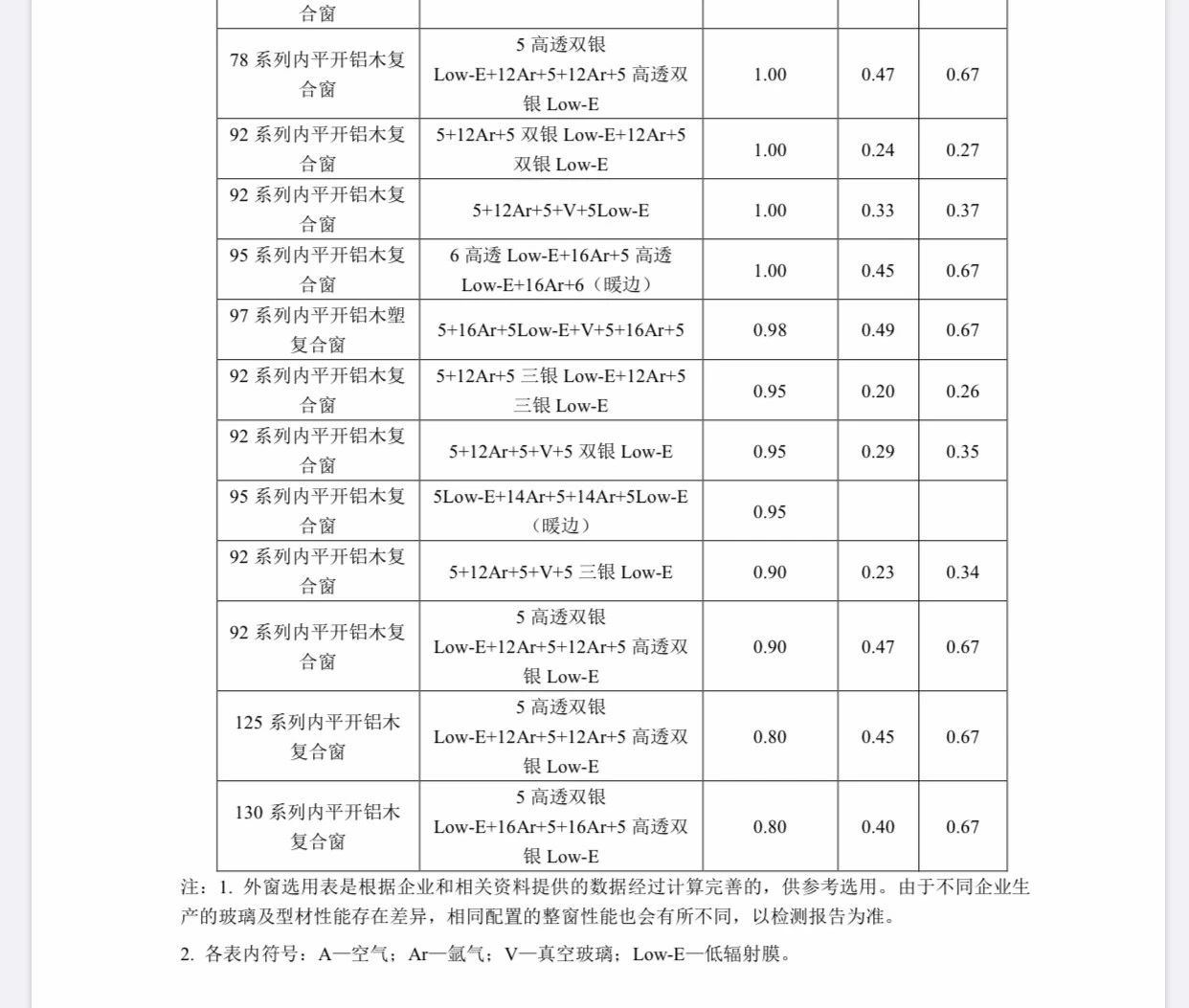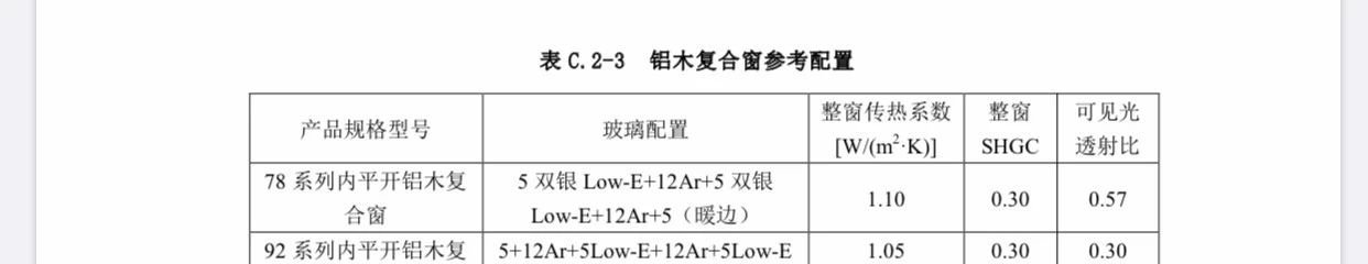 表 C.2-3 鋁木復(fù)合窗參考配置
