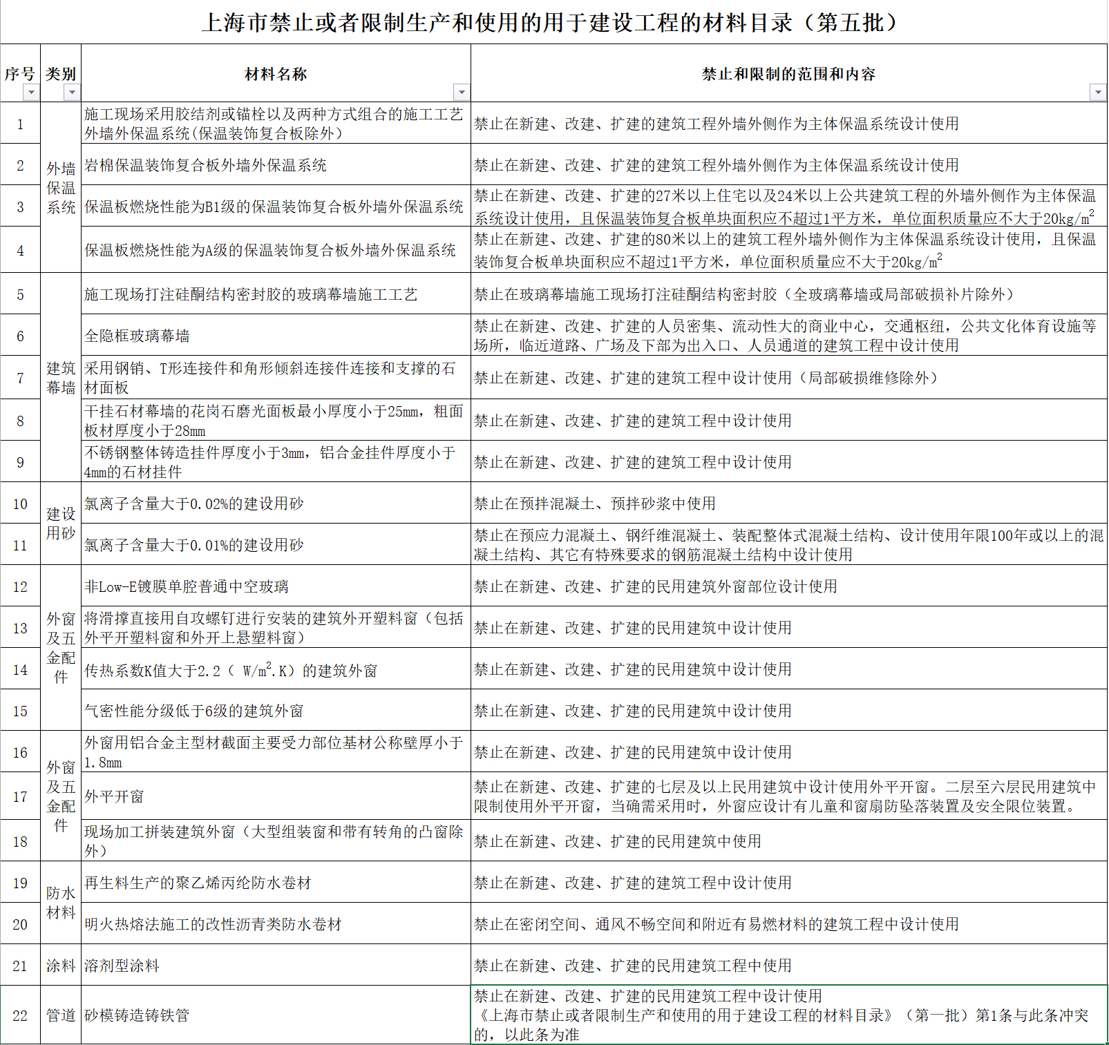 [上海市住建委]關(guān)于公布《上海市禁止或者限制生產(chǎn)和使用的用于建設(shè)工程的材料目錄(第五批)》的通知 滬建建材〔2020〕539號